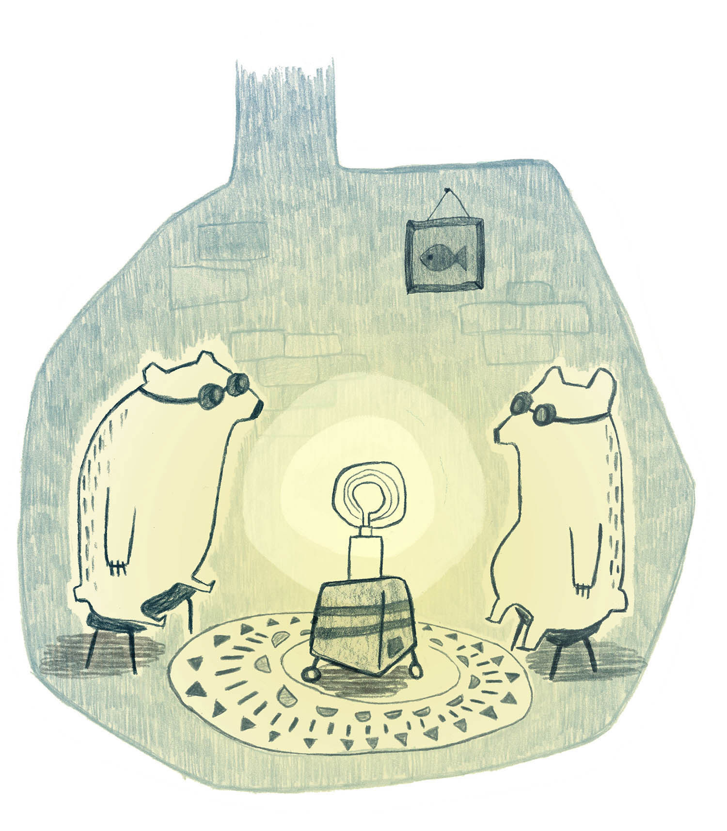 These polar bears are getting their vitamin D quota with a sunray lamp. Illustration for a medical journal raising awareness about vitamin D deficiency
